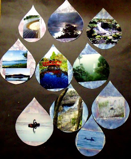 For the photos, I chose ones that fitted in with the theme, as well as representing the water cycle (somewhat) and some recreational past times. So we have stormy skies. rain pouring down, dams overflowing, waterfalls, babbling creeks, rivers, bays, water life (ducks, swans, dolphins) and boats.